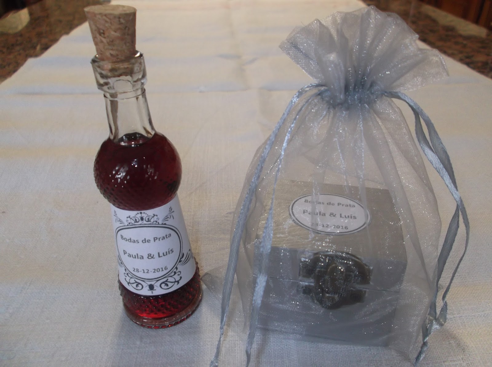 Para os Senhores, adquiri estas garrafinhas que rotulei e enchi de Vinho do Porto.